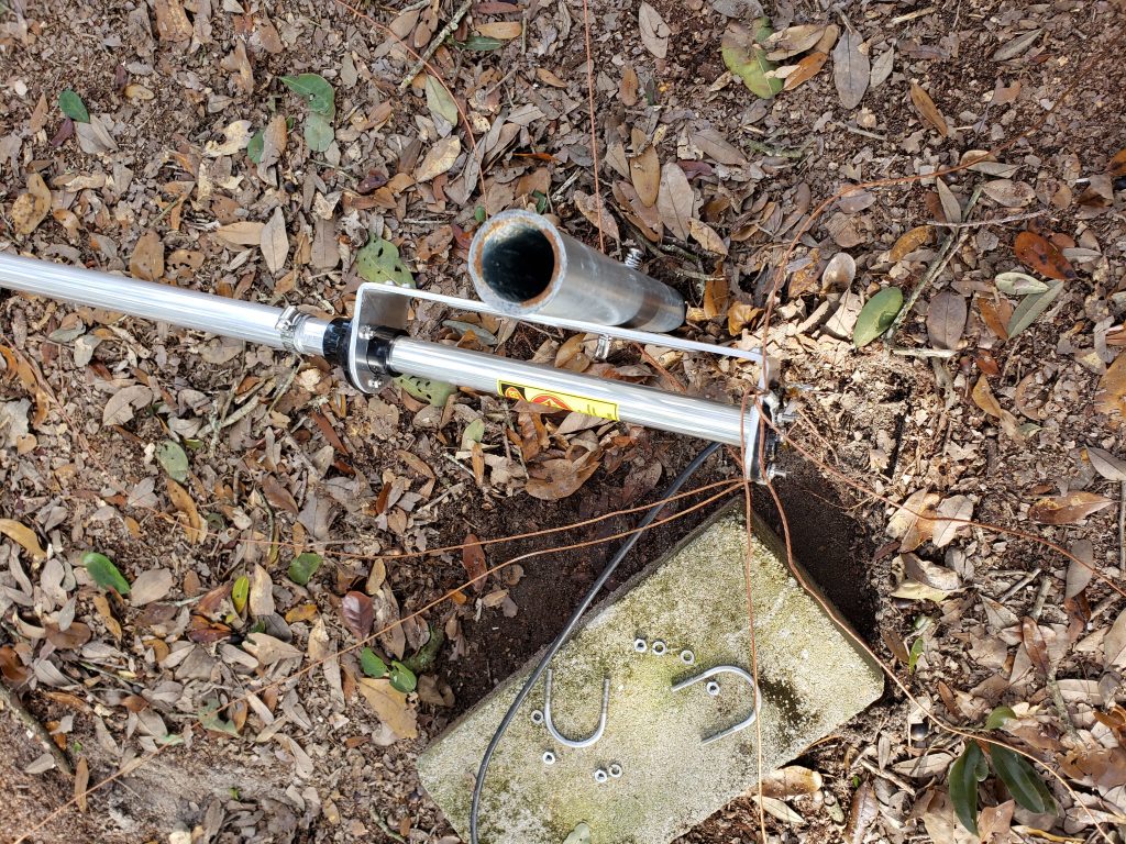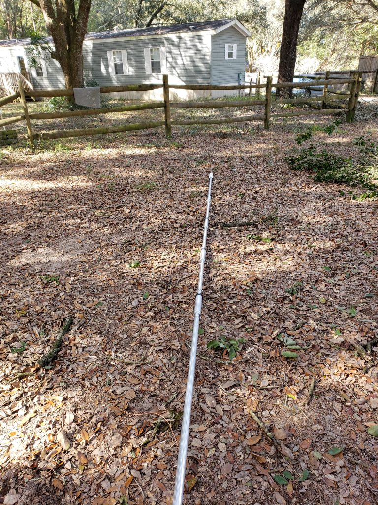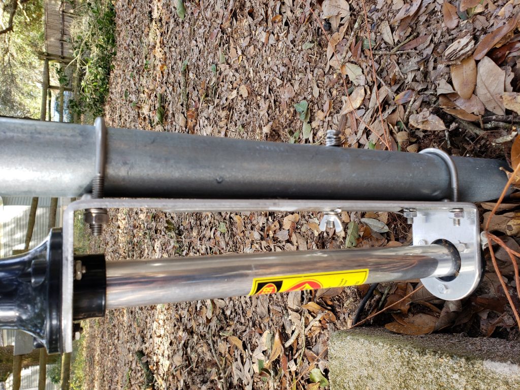 It takes some effort to tune this antenna properly, and the ability to tilt it is quite useful. The next three pictures show my poor (or stingy) man’s tilt option, based on a suggestion by my brother Bob, N3AU.